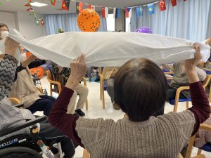 しっかり準備体操をしてから風せんゲーム、玉入れをおこないました!🥳